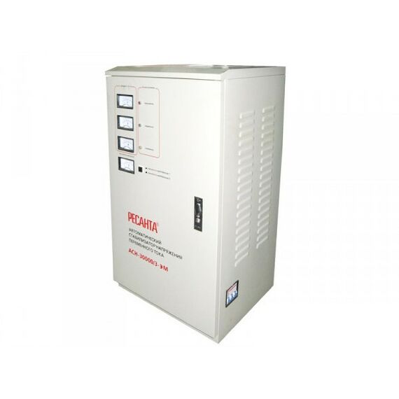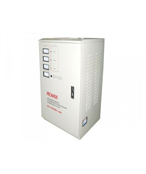 Трехфазный электромеханический стабилизатор Ресанта АСН-30000/3-ЭМ используется для защиты от перепадов напряжения высокоточного оборудования с общей потребляемой мощностью до 30 кВт. Стабилизатор АСН-30000/3-ЭМ стоит купить для продления срока службы подключаемых приборов, что достигается за счет широкого диапазона поддерживаемого входного напряжения, высокой точности стабилизации и фильтрации частотных помех.