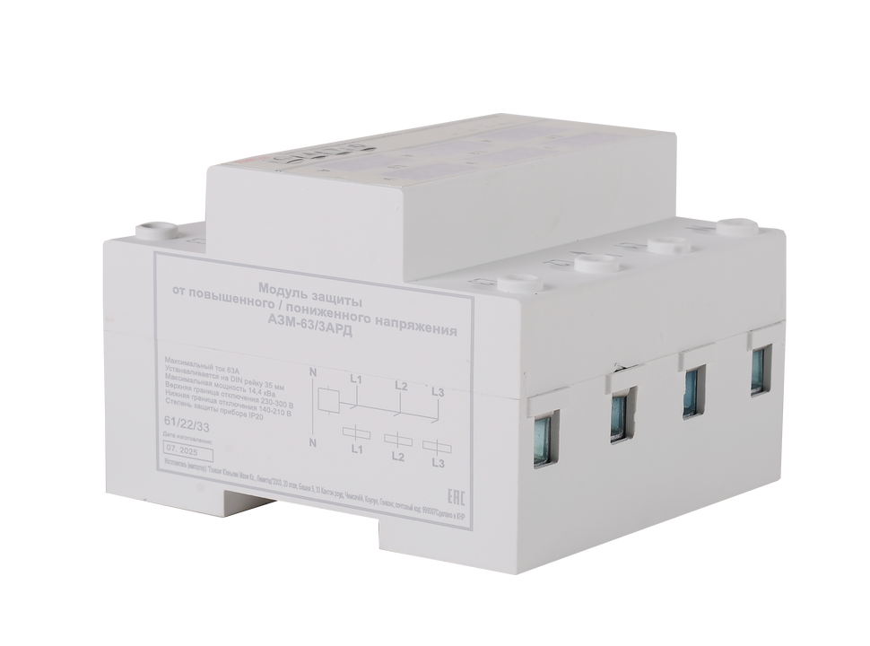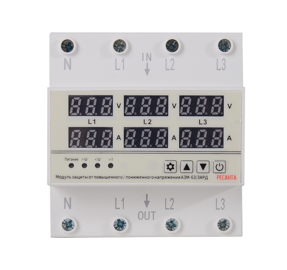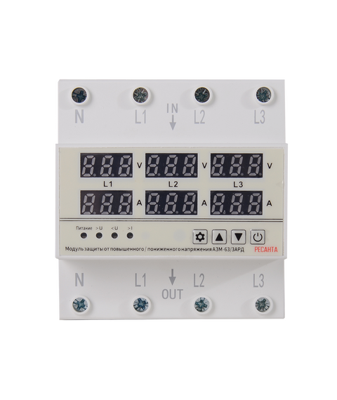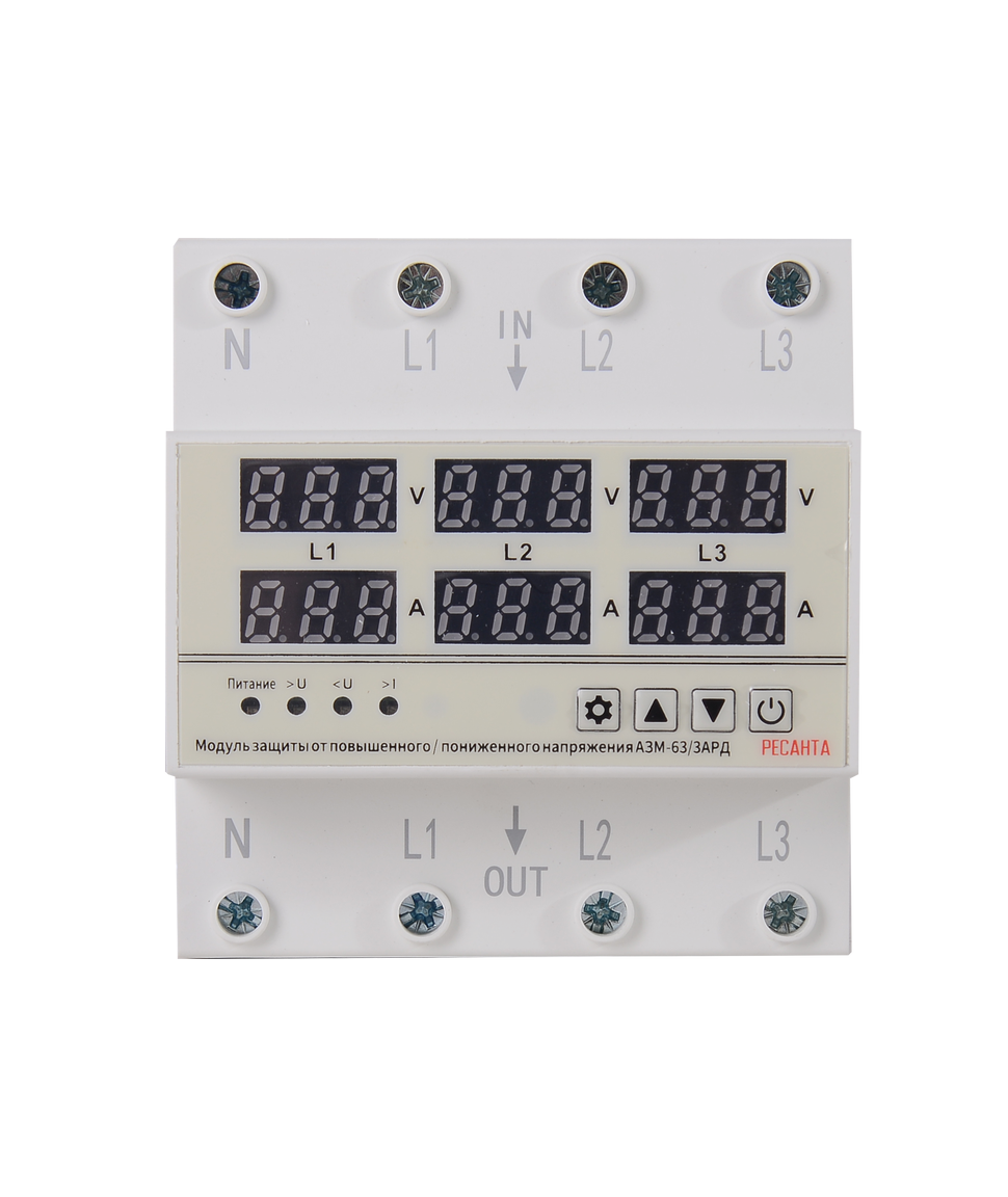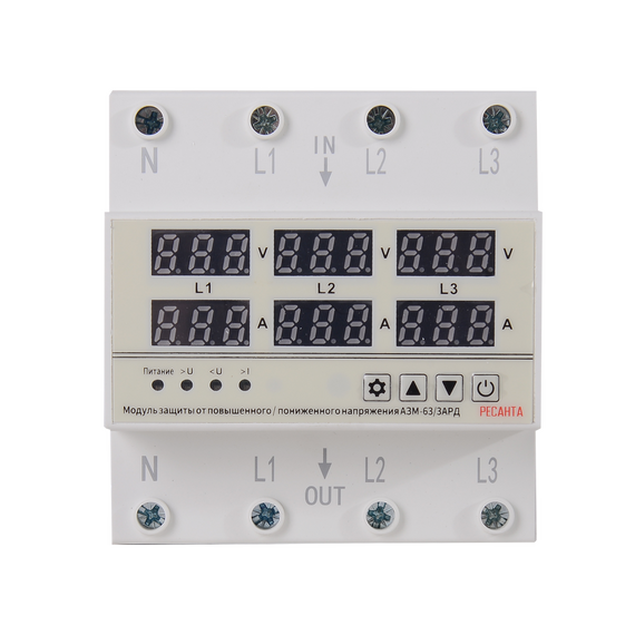 Блок защиты по напряжению РЕСАНТА АЗМ-63/3АРД регулируемый, с дисплеем