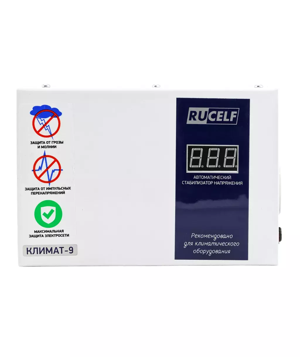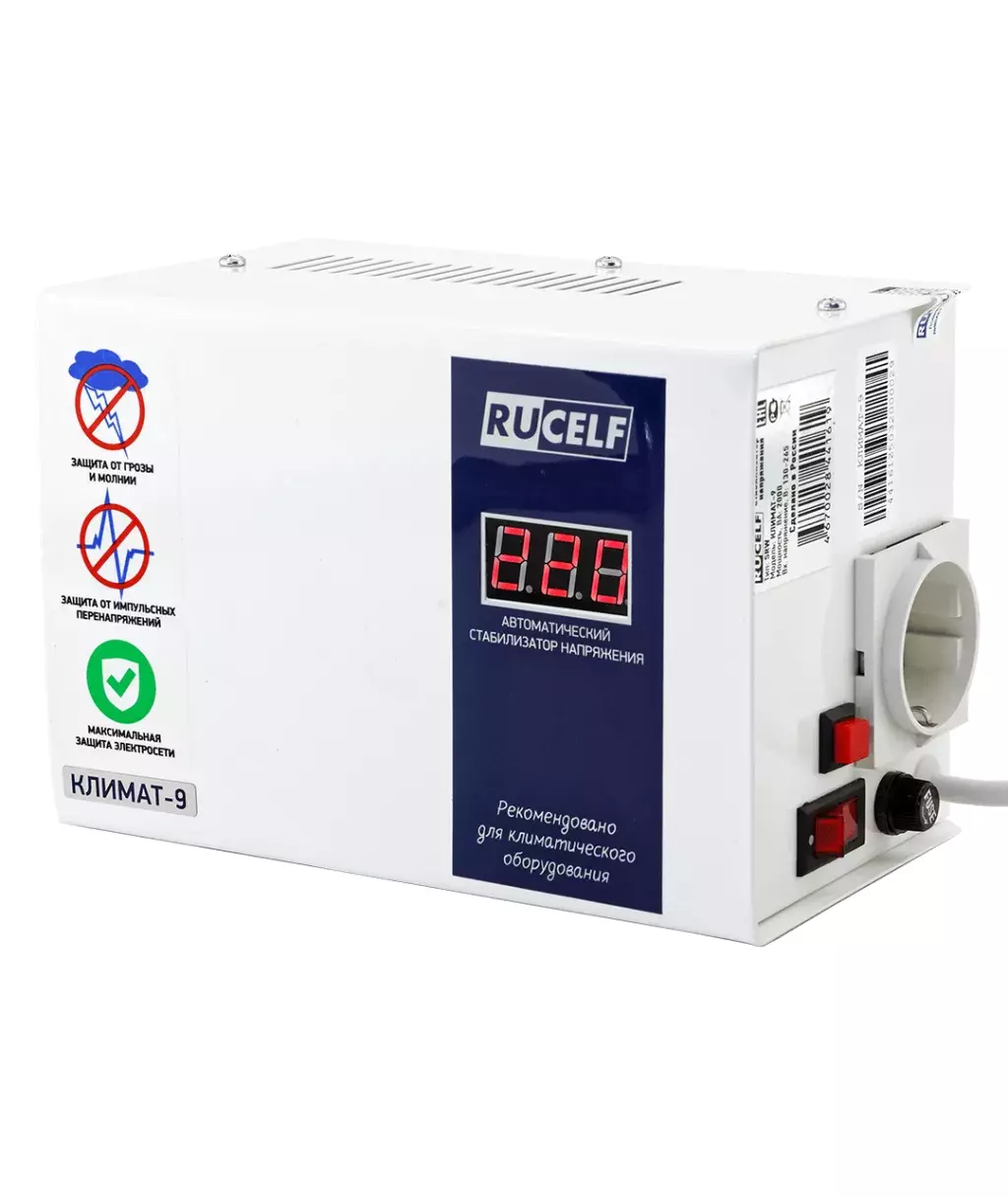 Rucelf КЛИМАТ-9 2000 ВА - идеальное решение для защиты от перепадов напряжения в частных домах, квартирах и офисах. Он обеспечивает надежную защиту вашей техники, гарантируя ее долговечность и бесперебойную работу.