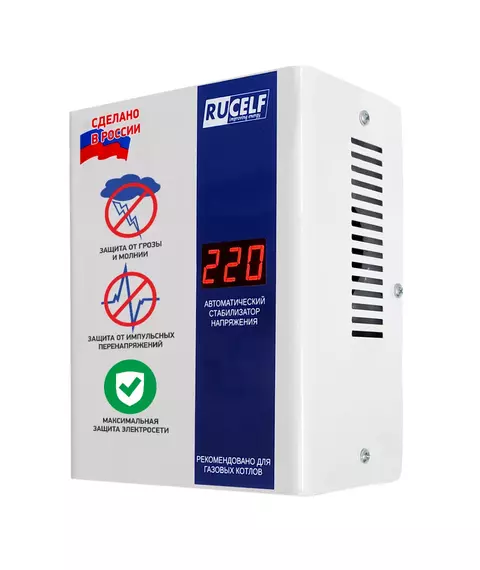 | Особенности | Rucelf КОТЁЛ это серия специализированных стабилизаторов напряжения, предназначенных для работы с котлами отопления. |