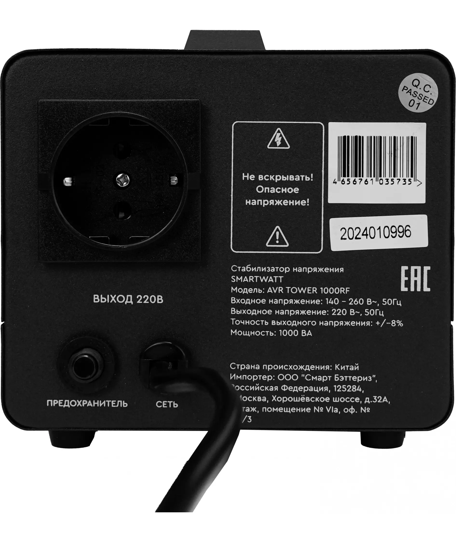 Стабилизатор напряжения Smartwatt AVR Tower 1000RF 1000ВА черный [4512020370002]