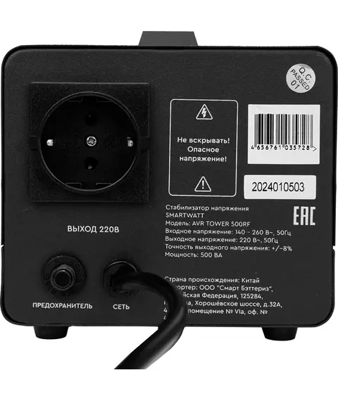 Стабилизатор напряжения Smartwatt AVR Tower 500RF 500ВА черный [4512020370006]