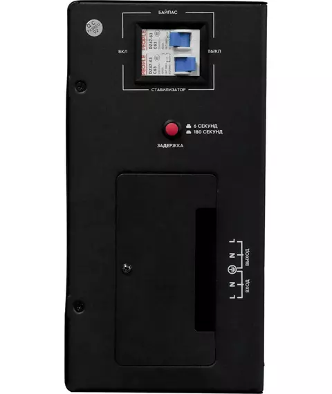 | Особенности | стабилизация напряжения от 100В, высокая точность, плоский корпус, задержка на включение, встроенный байпас, расширенный дисплей индикации, напольное и настенное размещение |