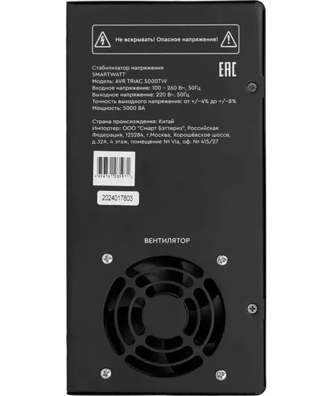 Стабилизатор напряжения Smartwatt AVR Triac 5000TW 5000ВА черный [4512020380002]