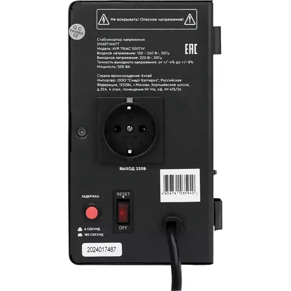Стабилизатор напряжения Smartwatt AVR Triac 500TW 500ВА черный [4512020380004]