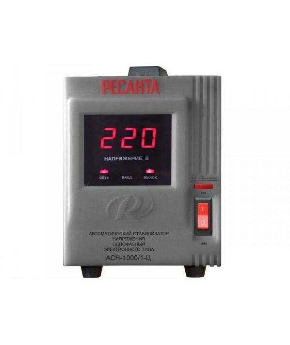 Однофазный электронный стабилизатор Ресанта АСН-1000/1-Ц оснащен микропроцессорным управлением, цифровым индикатором напряжения. На дисплее отображается входное/выходное напряжение.