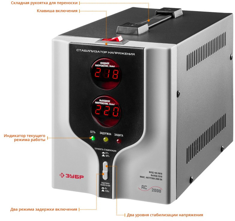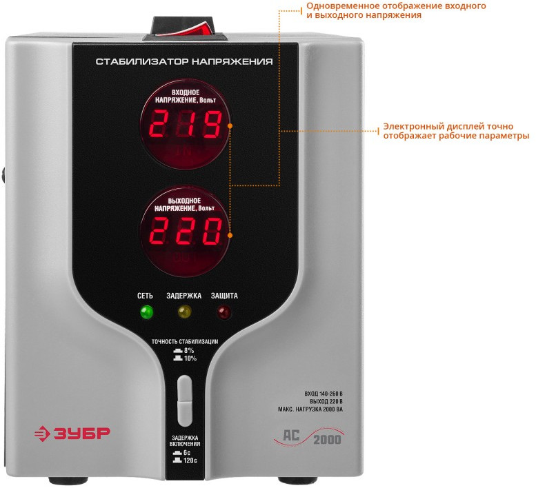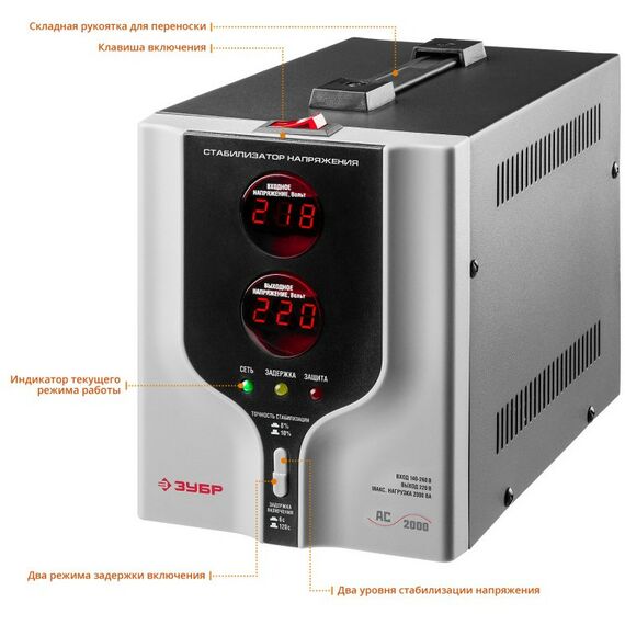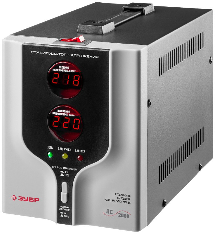 профессиональный стабилизатор напряжения Зубр АС 2000 2000 ВА, 140-260 В, 8% [59375-2]