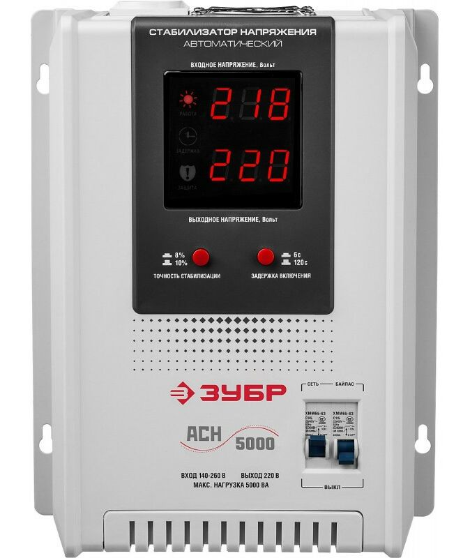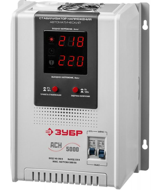 Профессиональный стабилизатор напряжения навесной Зубр АСН 5000 5000 ВА, 140-260 В, 8% [59385-5]