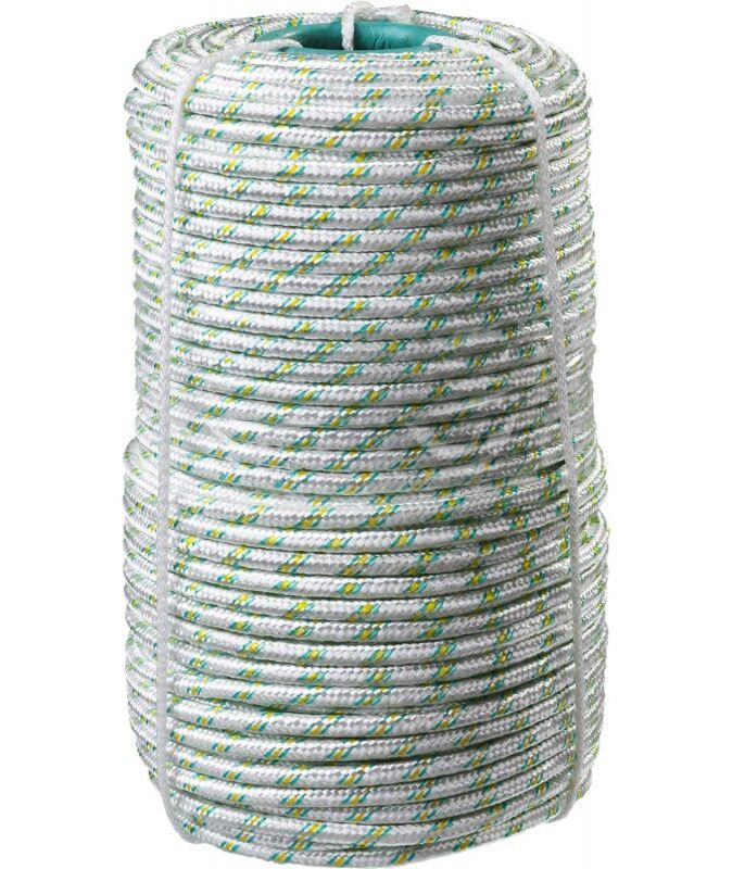 Фал плетёный капроновый СИБИН 50220-08 16-прядный с капроновым сердечником, диаметр 8 мм, бухта 100 м, 1000 кгс