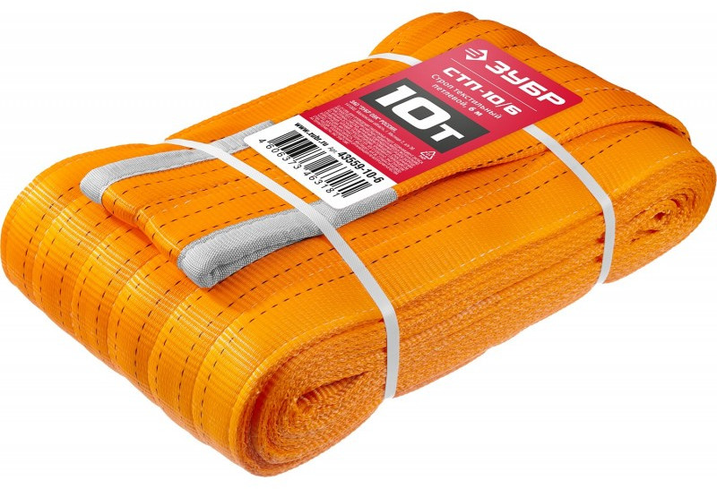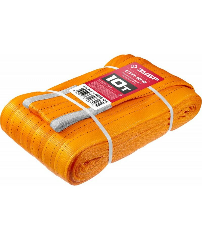 Текстильный петлевой строп Зубр СТП-10/6 оранжевый, г/п 10 т, длина 6 м [43559-10-6]