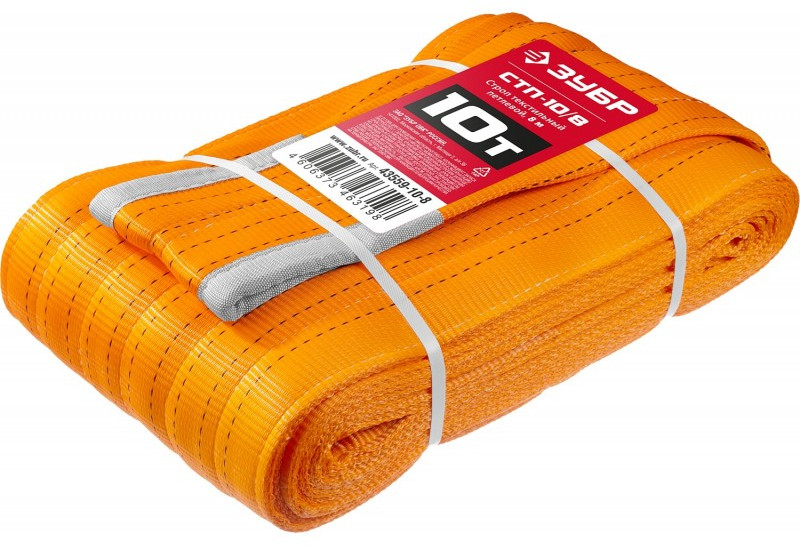 Текстильный петлевой строп Зубр СТП-10/8 оранжевый, г/п 10 т, длина 8 м [43559-10-8]