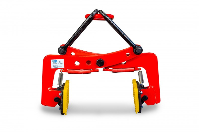 Захват для блоков (или бордюров, брикетов) предназначен для подъема брикетов из бетона, дерева, пластмассы, металлической стружки. Зев (створ) захвата позволяет удерживать одним захватом грузы различных габаритов. Захват снабжен фиксатором для удержания в открытом положении и шипами на лапах для более надежного удержания груза.