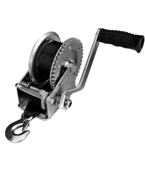 Длина ленты составляет 10 метров. Лебедка отличается надёжностью и простотой использования.