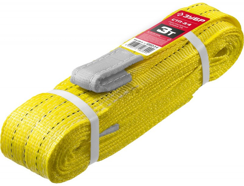 Текстильный петлевой строп Зубр СТП-3/4 желтый, г/п 3 т, длина 4 м [43553-3-4]