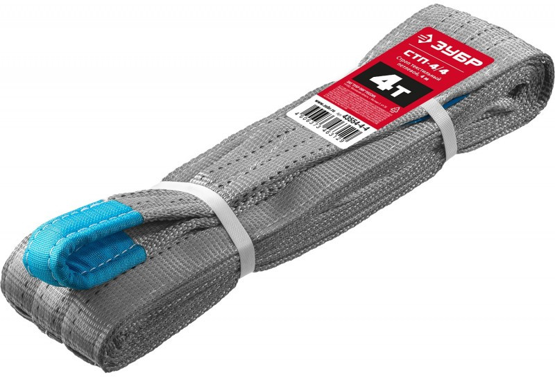 Текстильный петлевой строп Зубр СТП-4/4 серый, г/п 4 т, длина 4 м [43554-4-4]