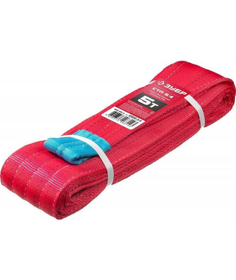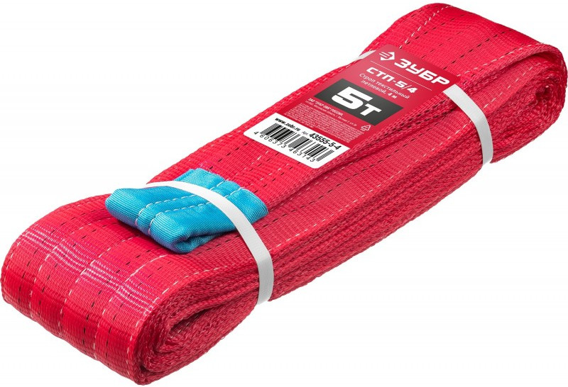 Текстильный петлевой строп Зубр СТП-5/4 красный, г/п 5 т, длина 4 м [43555-5-4]