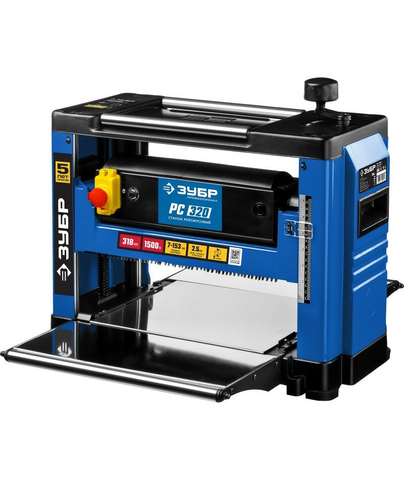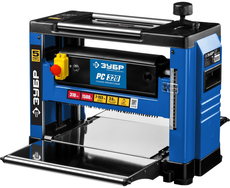Рейсмусовый станок Зубр РС-320 ширина строгания 318мм, толщина заготовки до 153 мм, 2 ножа, 9000 об/мин, 1500Вт, 8м/мин