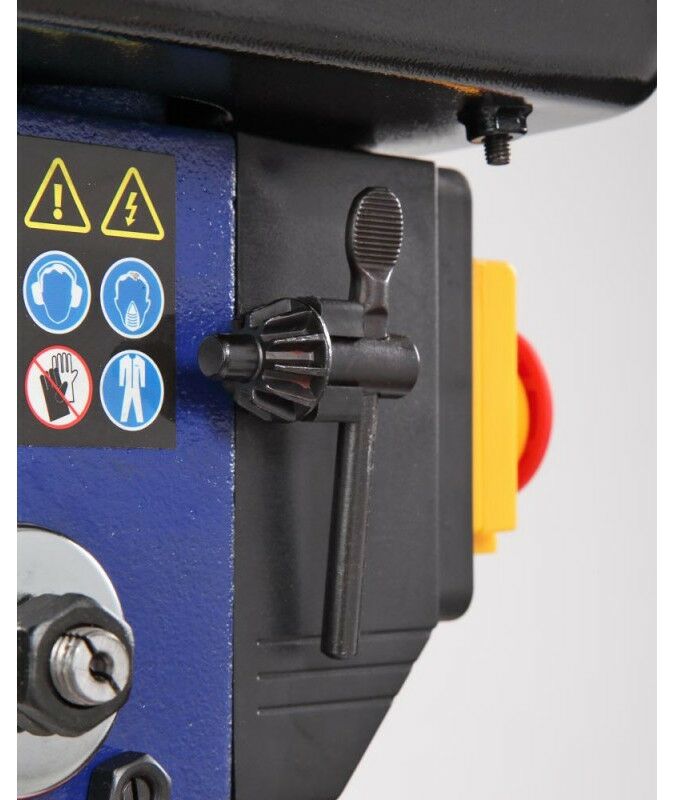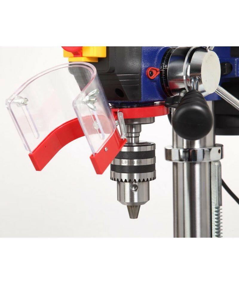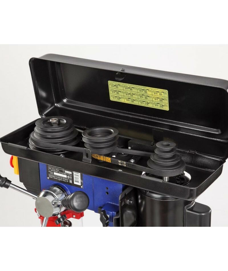 - Патрон ключевой, трехкулачковый с максимальным диаметром зажимаемого хвостовика инструмента 16 мм. Диаметр стойки (колонны) 60 мм, имеется зубчатая рейка, поднятие/опускание стола настраивается с помощью рукоятки