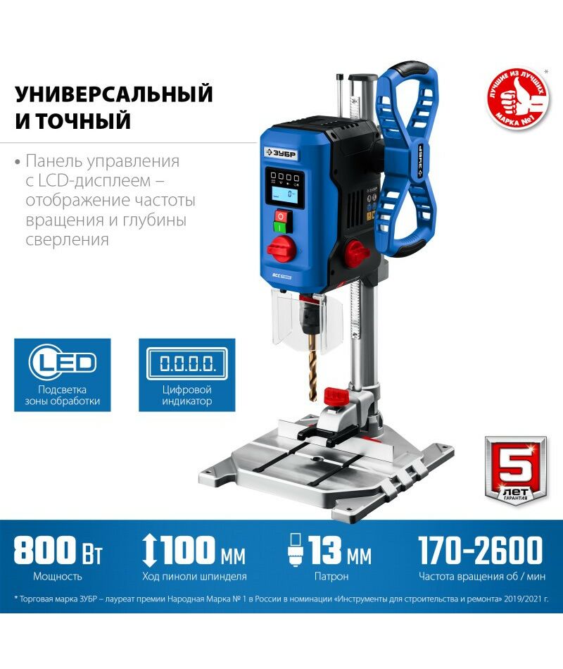 Вертикально-сверлильный станок Зубр Профессионал ВСС-П800 800 Вт, 13 мм БЗП, настольный