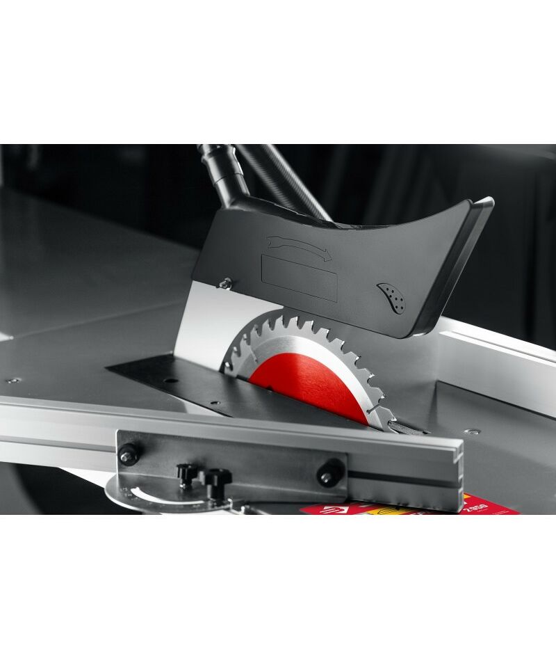 - Защитный кожух диска автоматически откидывается при подаче заготовки и защищает оператора от травм