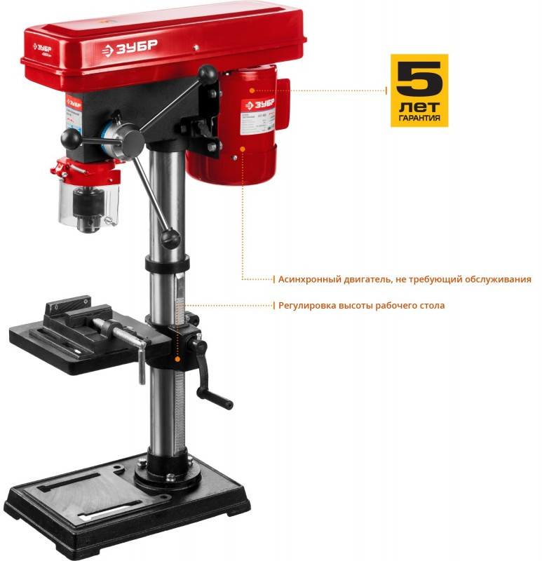 - Удобная фиксация заготовки, точность сверления, широкий диапазон скоростей шпинделя - станок ЗУБР способствует качеству и простоте Вашей работы