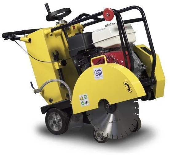 Резчик швов TOR CC-400 (Honda) оснащен надежным бензиновым четырёхтактным двигателем Honda GX390 (13л.с.). Диаметр, используемых дисков от 400 до 450 мм позволяет достигать глубину реза 130 мм. Встроенная система подачи воды снижает образование пыли при проведении работ и охлаждает диск, продляя его срок службы. Настраиваемая высота рукояти обеспечивает комфортную работу оператора.