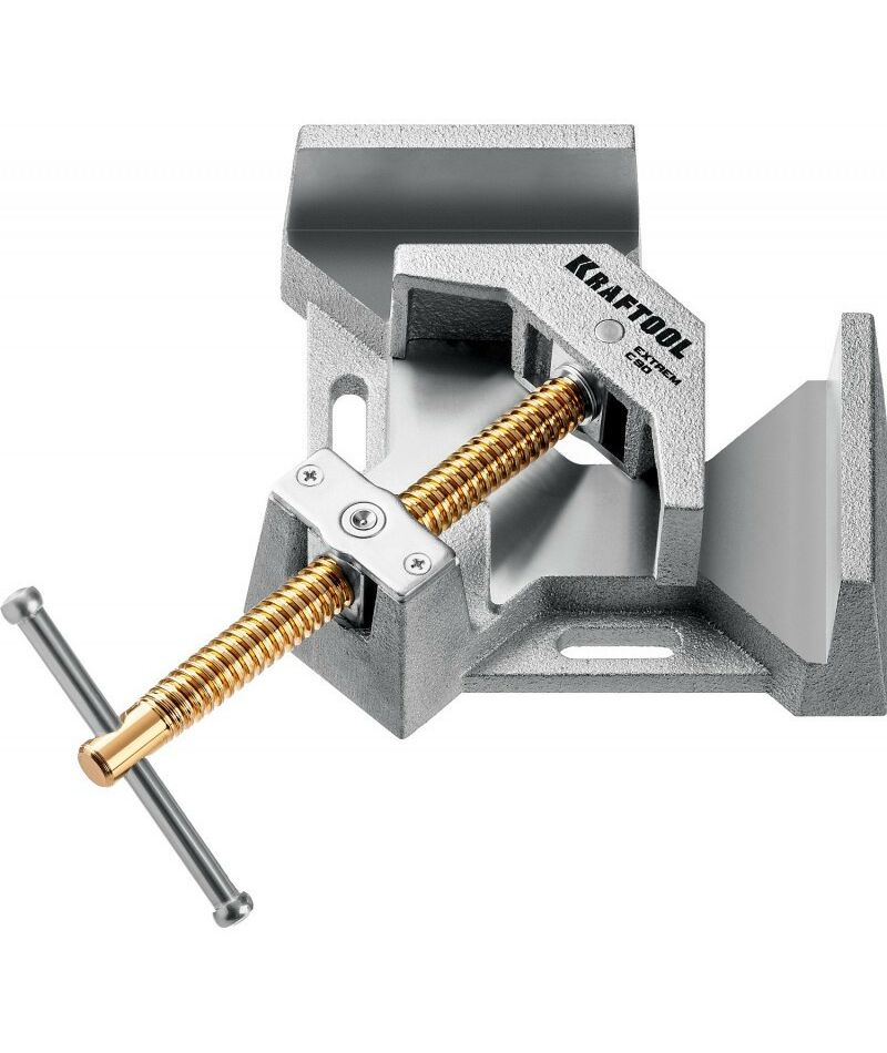 Экстрамощная стальная угловая струбцина для сварочных работ KRAFTOOL EXTREM C90 Две опорные поверхности по 88 мм, глубина зажима 90 мм [32201]