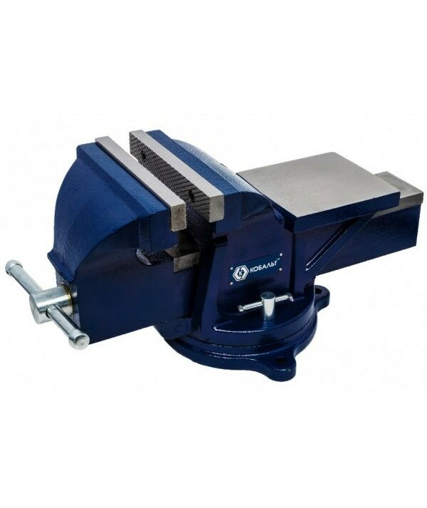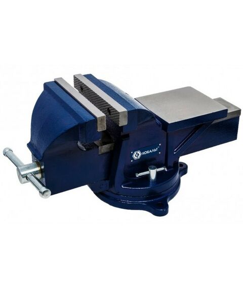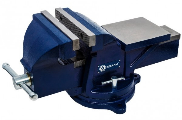 Тиски слесарные Кобальт 246-005 поворотные, ширина губок 200 мм, захват 220 мм, 35 кг, наковальня, коробка