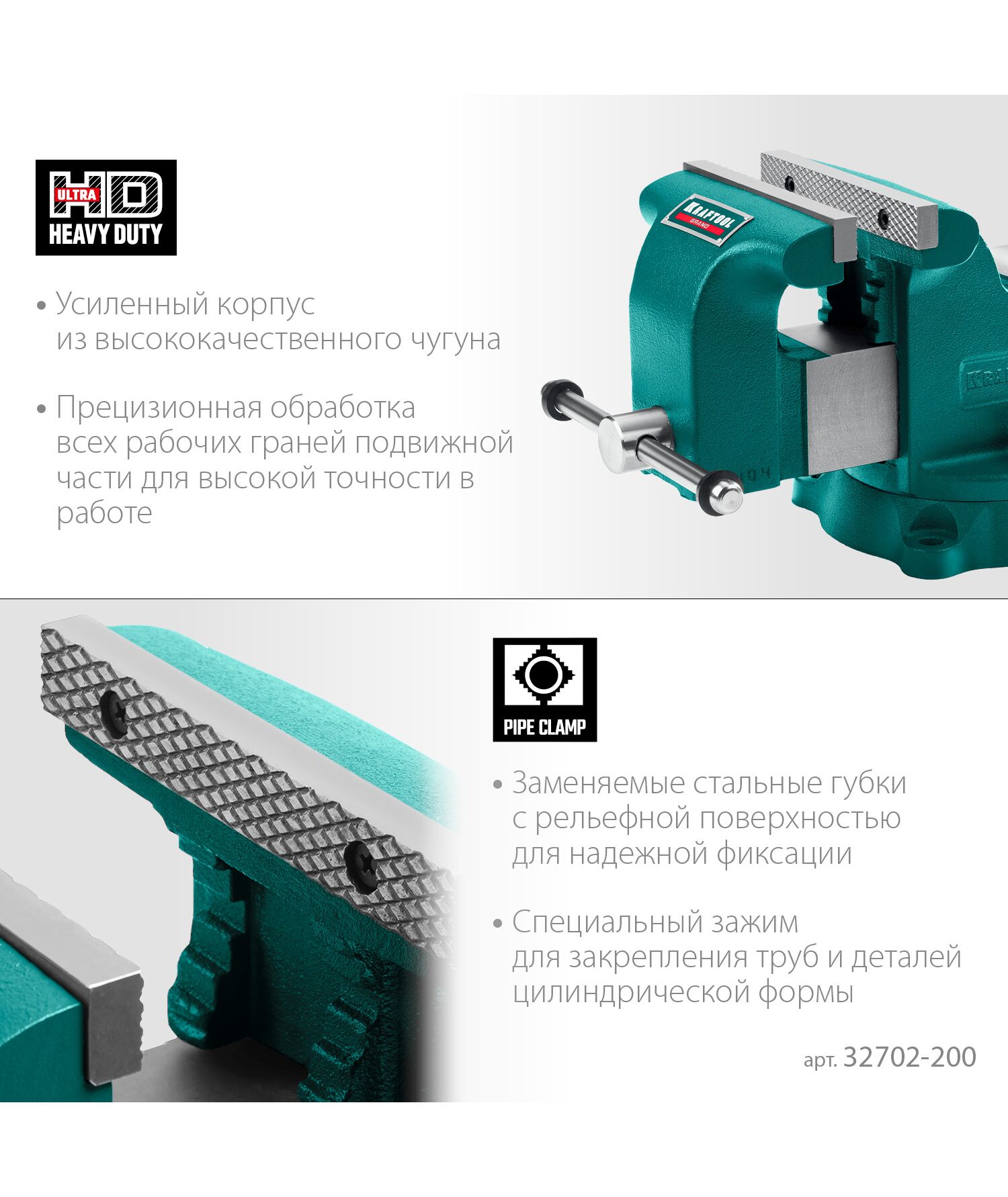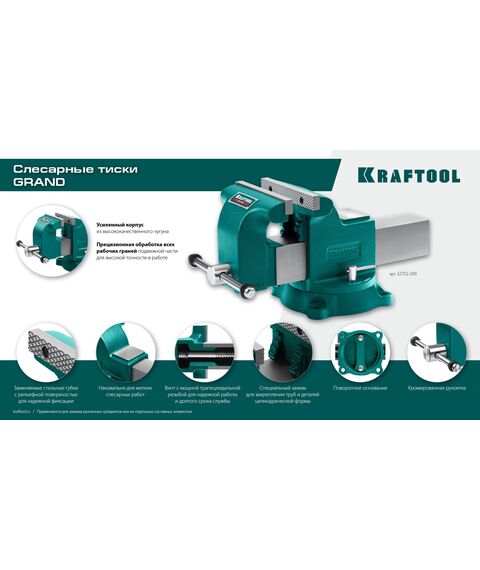 Слесарные тиски KRAFTOOL GRAND 200 мм [32702-200]
