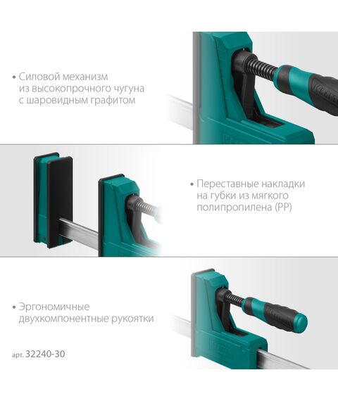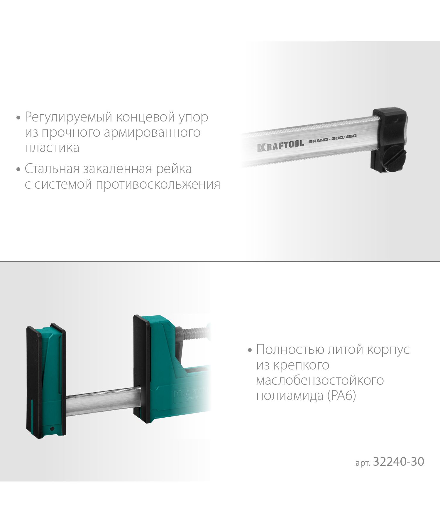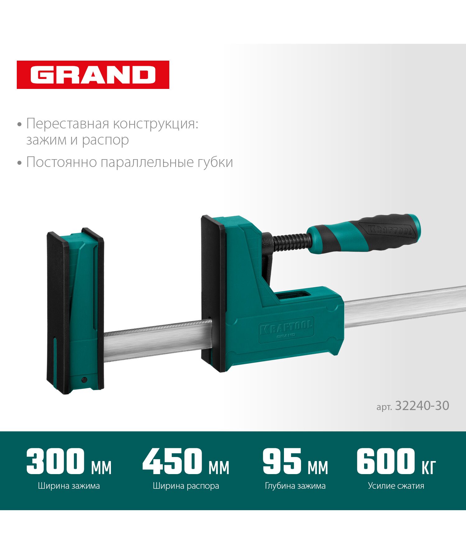 Корпусная струбцина KRAFTOOL GRAND-300/450 300/450 мм, сжатие/распор, 600 кгс, глубина зажима 95 мм [32240-30]
