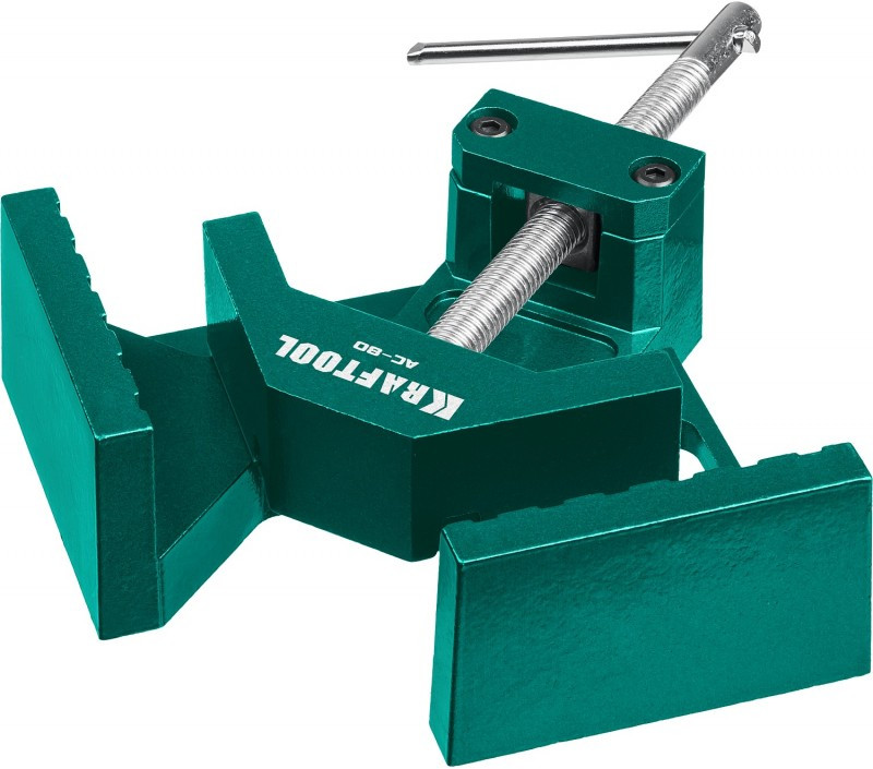 Мощная алюминиевая угловая струбцина KRAFTOOL AC-80 две опорные поверхности по 88 мм, глубина зажима 70 мм [32202]