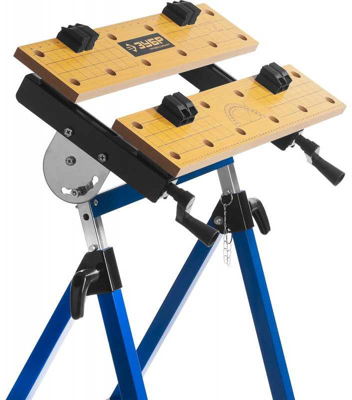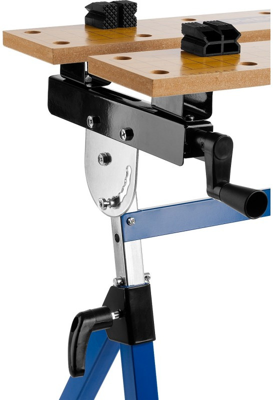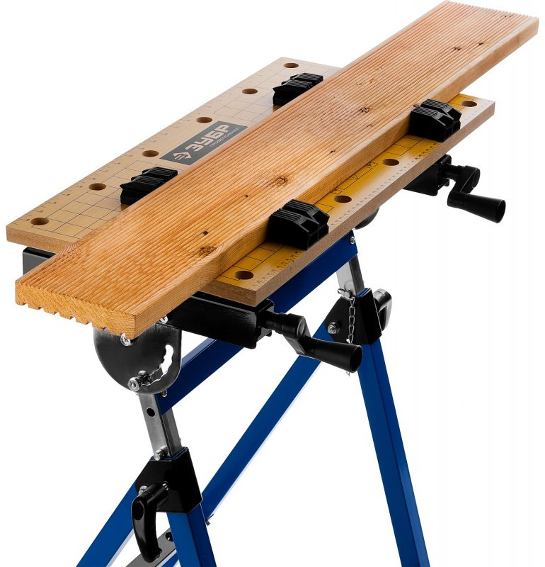 - Незаменимый помощник в мастерской, в гараже и в домашних условиях. Предназначен для проведения столярных работ. Благодаря складному каркасу удобен в хранении и транспортировке. Столешница состоит из статической и подвижной части, фиксируемой двумя вращающимися ручками. Для удобства в работе столешница оснащена отверстиями и фиксаторами заготовок любой формы.