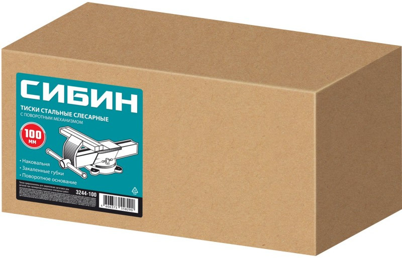 Стальные слесарные тиски СИБИН 100 мм [3244-100]