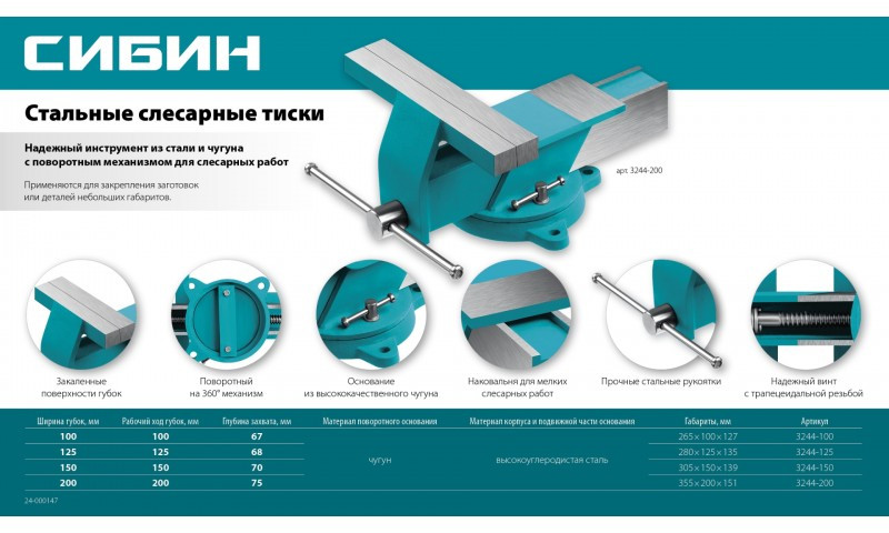 Надежный профессиональный инструмент из стали и чугуна с поворотным механизмом для всевозможных слесарных работ.