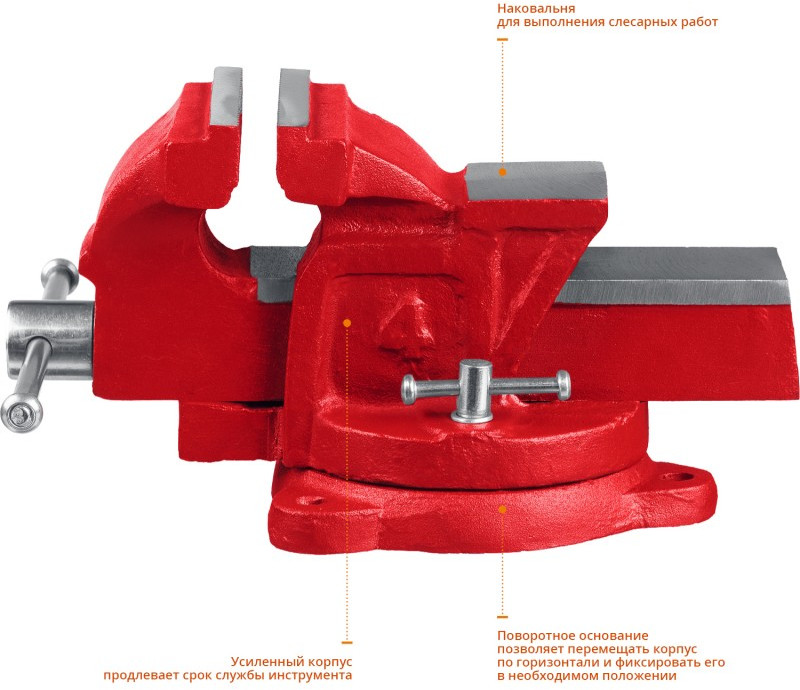 Надежный инструмент с поворотным механизмом, обеспечивающим удобство при выполнениии слесарных работ.
