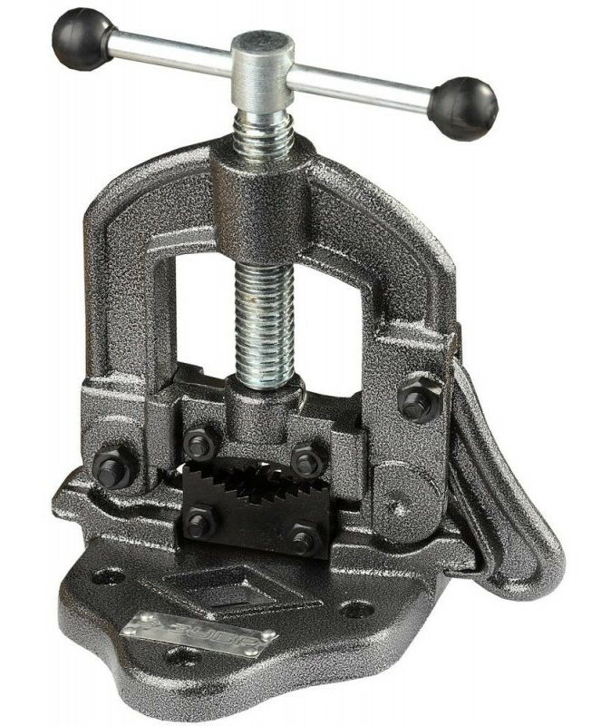 - Рельефная поверхность губок для надежного и безопасного крепления труб