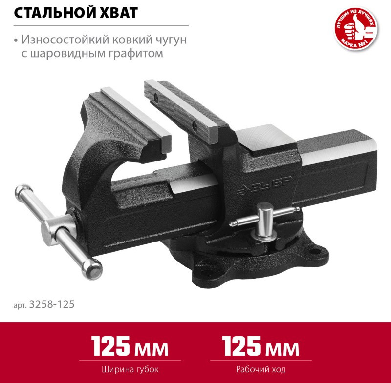 Тиски слесарные ЗУБР МАСТЕР изготовлены высококачественного чугуна, соответствуют самым высоким техническим требованиям. Обеспечивают длительную и качественную работу.