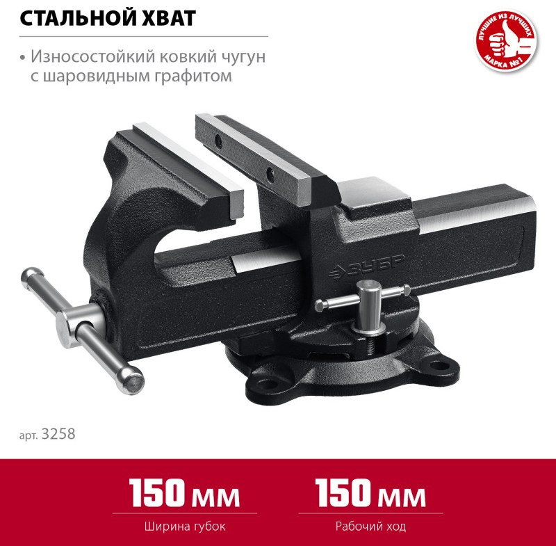 Тиски слесарные ЗУБР МАСТЕР изготовлены высококачественного чугуна, соответствуют самым высоким техническим требованиям. Обеспечивают длительную и качественную работу.