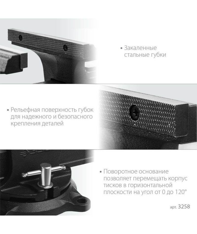 - Рельефная поверхность губок для надежного и безопасного крепления деталей
