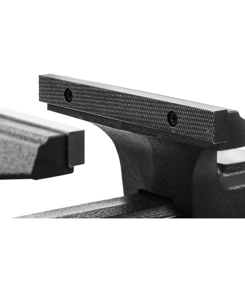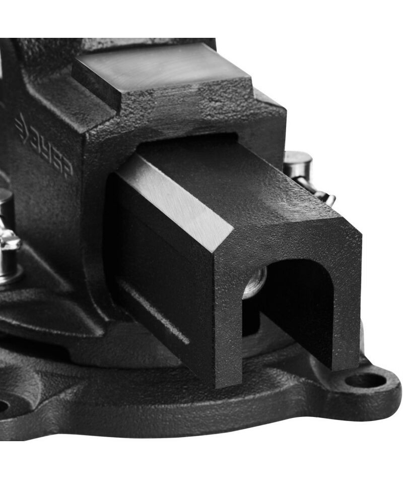 - Поворотное основание позволяет перемещать корпус тисков в горизонтальной плоскости на угол от 0 до 360 градусов