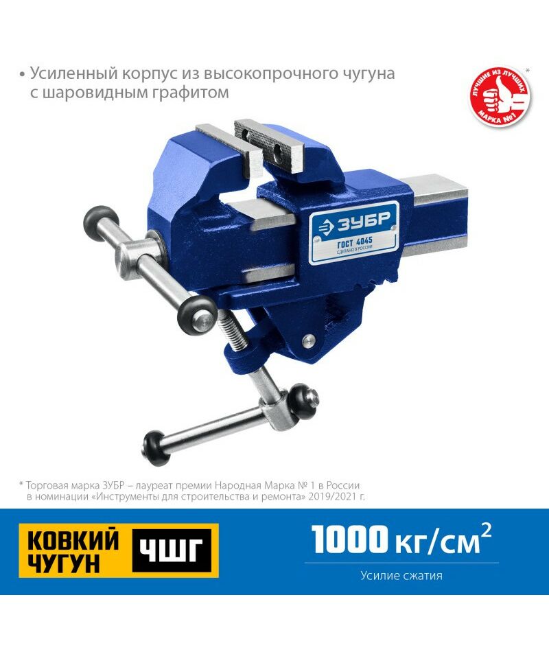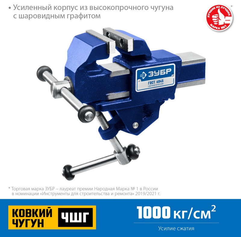 Тиски слесарные ЗУБР изготовлены из высокопрочного чугуна с шаровидным графитом, соответствуют самым высоким техническим требованиям. Компактные, снабжены струбциной для быстрой и надежной фиксации на рабочем месте. Обеспечивают длительную и качественную работу.