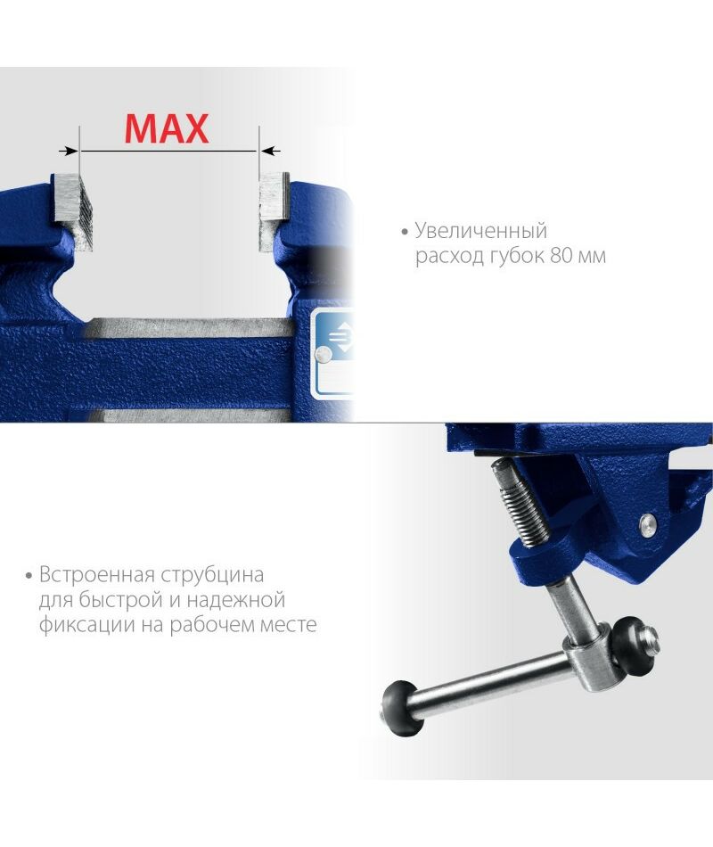- Встроенная струбцина для быстрой и надежной фиксации на рабочем месте