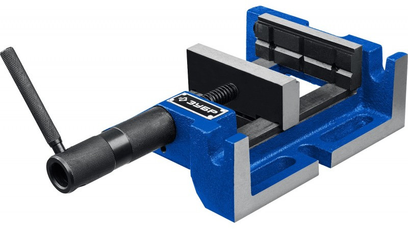 - Призматические пазы неподвижной губки позволяют зажимать горизонтально и вертикально цилиндрические заготовки