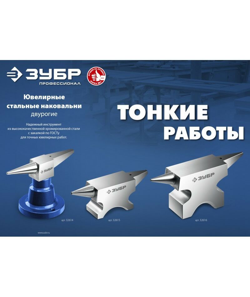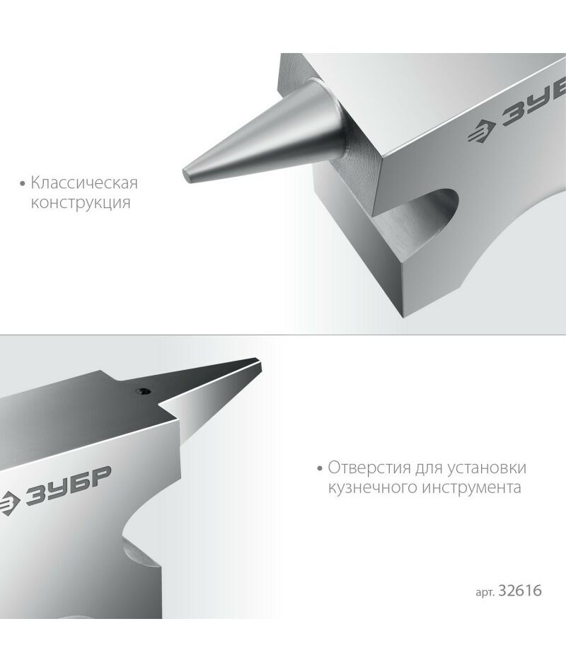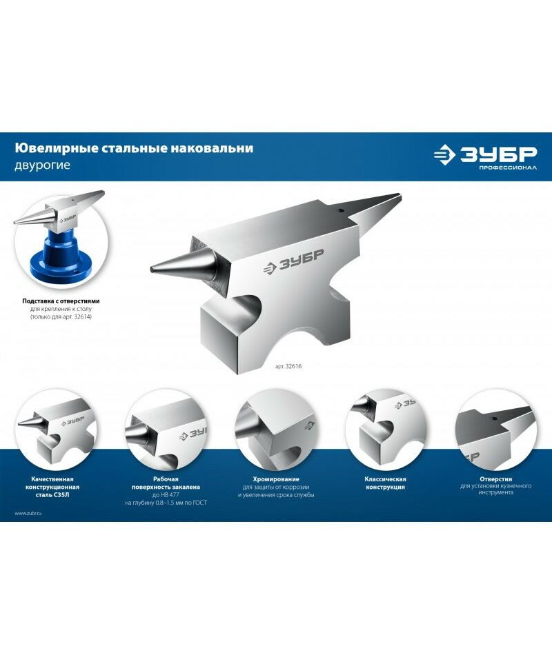 Стальная двурогая наковальня ЗУБР (шперак) для ювелирных работ и работы с проволокой . Антикоррозионное покрытие хромированием Сталь С35Л. Поверхность закалена на глубину 0,8-1,5 мм. Твердость рабочей части HB 340-477. Отверстия Ø3-4 мм для установки инструмента. Увеличенный срок службы. Для точных работ. Серия Профессионал У настольной версии предусмотрены отверстия для жеской фиксации на столе.