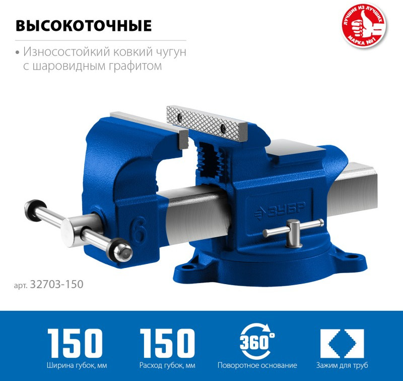 Высокоточные слесарные тиски Зубр Профессионал 150 мм [32703-150]