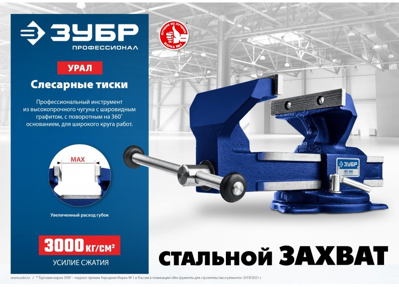 - Тиски слесарные ЗУБР изготовлены из высокопрочного чугуна с шаровидным графитом, соответствуют самым высоким техническим требованиям. Поворотное основание на 360˚. Обеспечивают длительную и качественную работу.