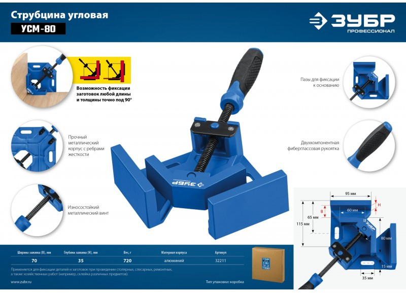 Угловая струбцина Зубр УСМ-80 Профессионал, 2 х 70 мм [32211]