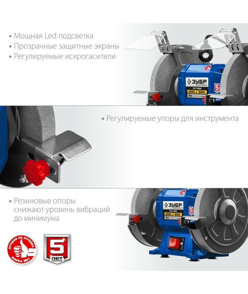 Профессиональный заточной станок Зубр ПСТ-200 d200 мм, 500 Вт