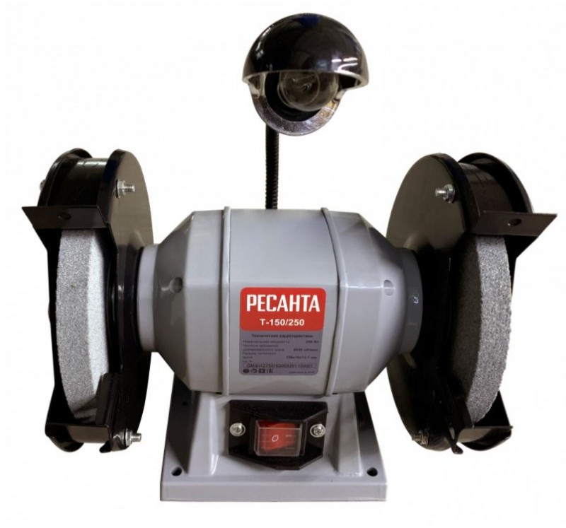 - Точильный станок РЕСАНТА Т-150/250 - золотая середина точильных станков этого бренда. Вес и габариты также остаются приемлемыми для небольшого рабочего стола, а мощность и размер круга чуть подросли, что позволяет быстрее справиться с теми же задачами. Оснащается регулируемой подсветкой