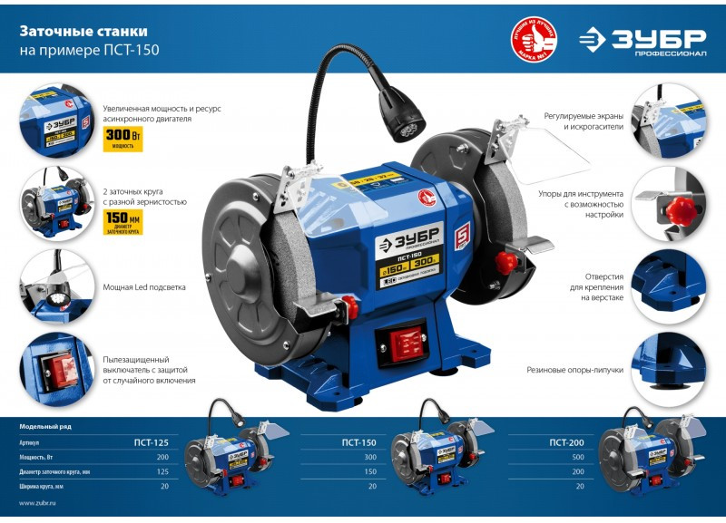Заточной станок Зубр ПСТ-150 Профессионал d150 мм, 300 Вт